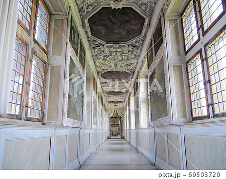 北欧の城の長い廊下,フレデリクスボー城, ヒレレズ, デンマーク