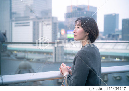 東京の景色を眺める女性