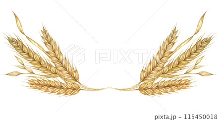 Barley spikes, cereal grain ears, wheat stalks. Symbol of Shavuot, Thanksgiving, Oktoberfest clipart. Cottagecore rustic watercolor illustration for beer, whisky, bread, flour packaging, labels.