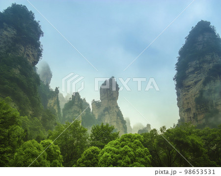 中国 張家界・武陵源 霧に包まれた奇岩と森 / Zhangjiajie, China