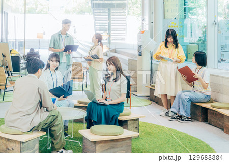 就活中の男女のグループディスカッション - 面接シーンのイラスト