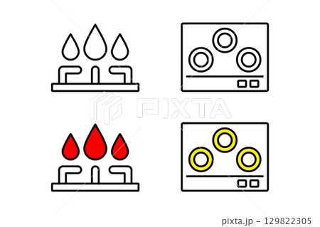 ガスコンロと電気コンロをイメージしたアイコンセット