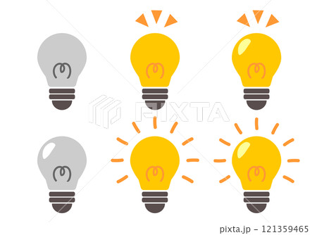 ひらめくイメージで光る電球のイラスト アイコンセット