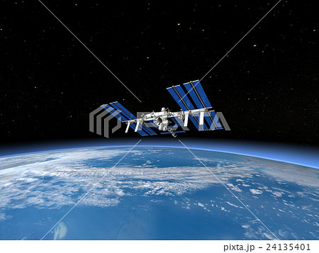 ISS国際宇宙ステーションと地球 perming3DCG イラスト素材