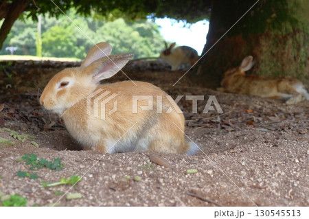 木陰で休む大久野島のウサギ(広島県竹原市)