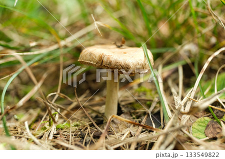 Wild Brown Mushroom with Fibrillose Cap on Forest Floor