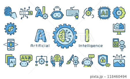 AI 人工知能 カラフルなアイコンセット(フルHD 16:9サイズ)