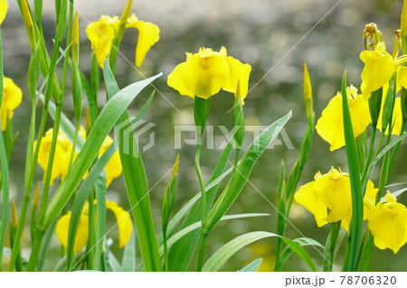 水辺の黄菖蒲の花