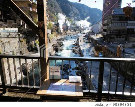 杖立温泉のもみじ橋から見る南側の風景 熊本県阿蘇郡小国町下城