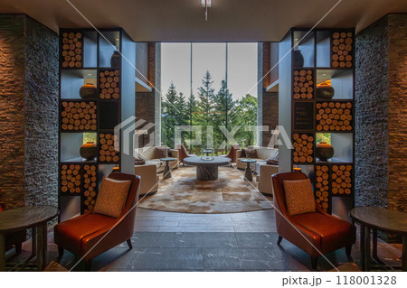 北海道 ニセコの高級リゾートホテル、東山ニセコビレッジ、リッツ・カールトン・リザーブのロビーラウンジ