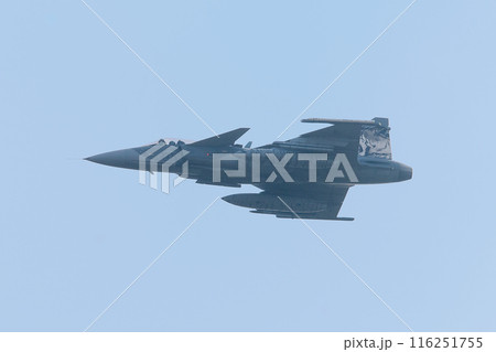 Saab JAS 39 Gripen light single-engine supersonic multirole fighter at airshow in Thailand.