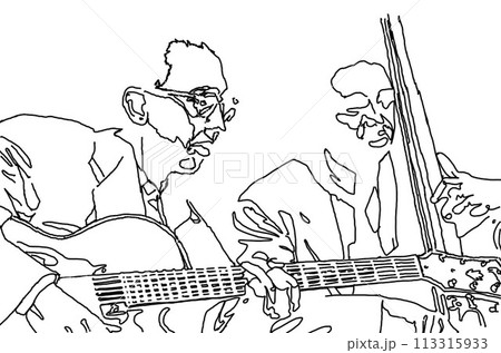 ジャズギターとベース奏者、線画