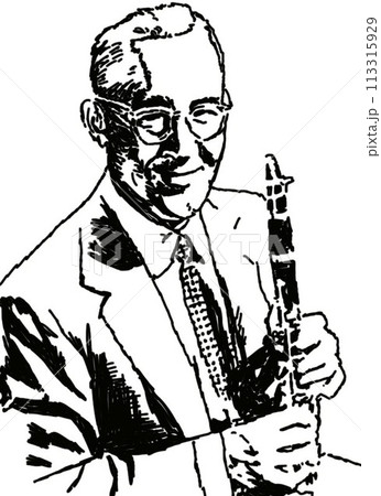 ジャズクラリネット奏者、線画