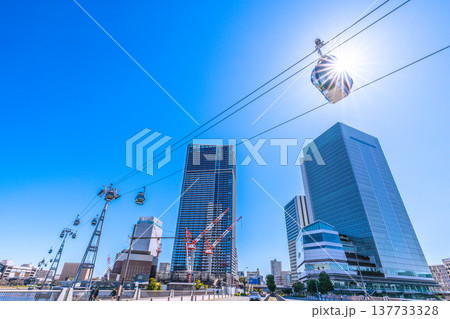日本の横浜都市景観 新時代へ…YOKOHAMA AIR CABIN桜木町駅などを望む。希望の光