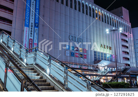 八王子駅の夜景 北口前の歩行者デッキと街並 東京都八王子市