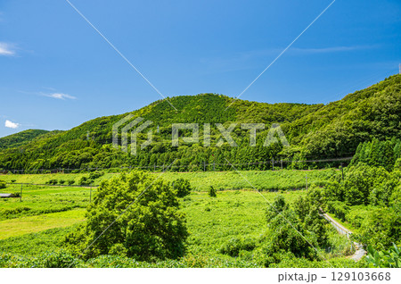 余呉町の田園風景と北陸本線 滋賀県長浜市