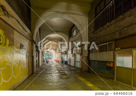 国道駅の高架下通路 JR東日本鶴見線の駅 影絵のようなトンネルの風景