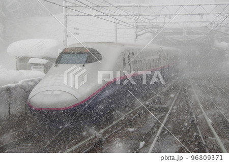 冬の上越新幹線ガーラ湯沢駅とE2系電車