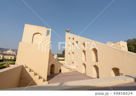 インドのジャイプル 世界遺産の天文台のジャンタル・マンタル 様々な形の天体観測儀