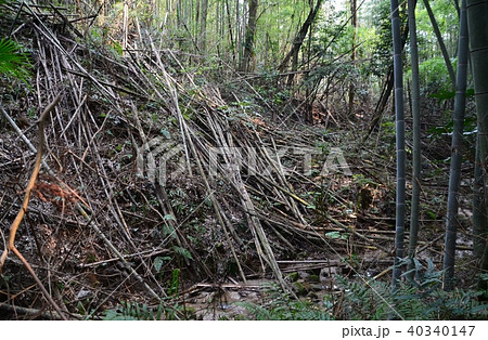 大門竹の子公園の新緑の竹林と切り株【エコイメージ】