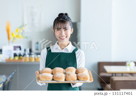 カフェで働く若い女性