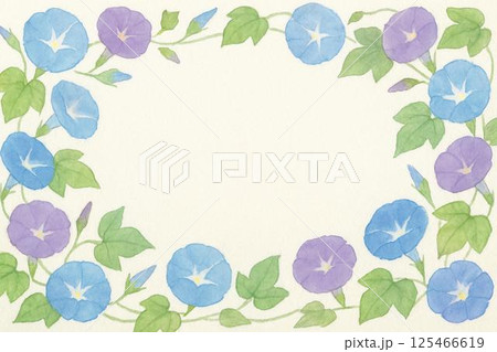 水彩風朝顔フレーム素材|中央スペースあり・植物イラスト