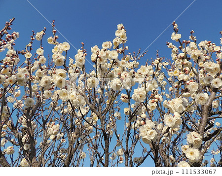 晴天の青空に映える白梅