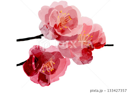 水彩で描いた紅梅のイラスト