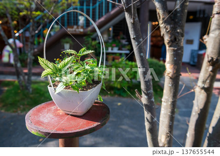 Plant on flower pot decor at Yufuin village, Oita