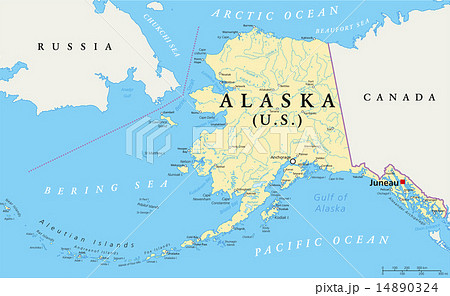 State of Alaska, part of Western United States, political map, with capital Juneau and largest cities and towns. Non-contiguous U.S.state on the northwest extremity of North America. Isolated. Vector