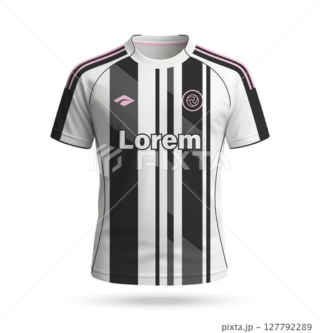 3d realistic soccer jersey in Juventus style, football club shirt template