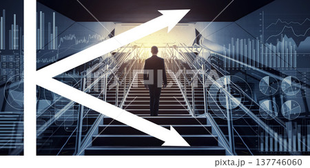 階段を登るビジネスパーソンと金融イメージ K字型経済