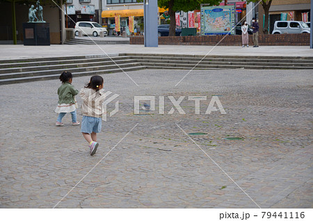 鳩を見つけて大はしゃぎな小さな小さな子どもたち