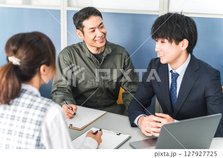 会議,打ち合わせ,ミーティングをする男女のビジネスマン