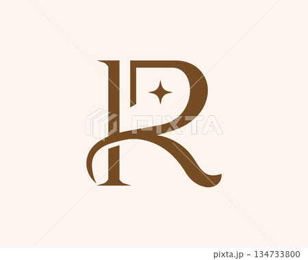 Sophisticated monogram letters K and R in a brown elegant style on a light beige background, with a decorative star symbol