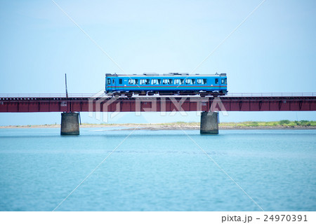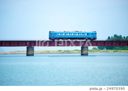 由良川橋梁を走る京都丹後鉄道の列車と青空