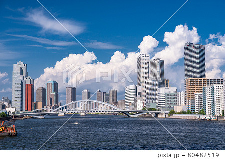 《東京都》勝どき橋と都市風景・夏の東京ベイエリア