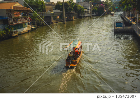 asia travel with people travel by boat on river at Bangkok Thailand in summer season