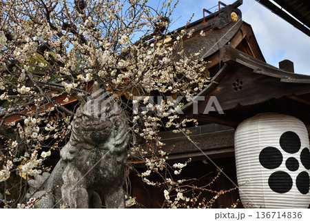 北野天満宮 三光門 白梅と狛犬(京都市上京区)