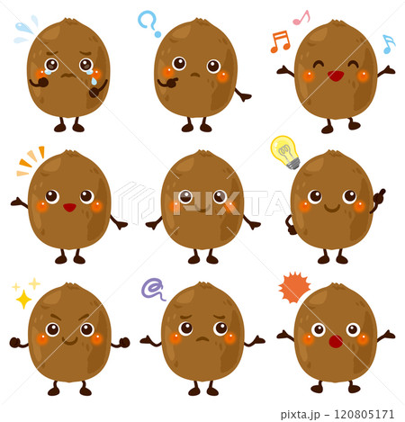 仲良しグリーンキウイ、ゴールデンキウイ、ルビーレッドキウイのキャラクターイラストセッ