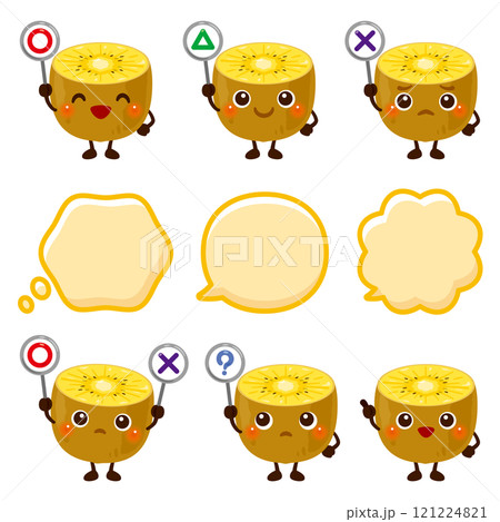 ○×△の札を持ったルビーレッドキウイのキャラクター