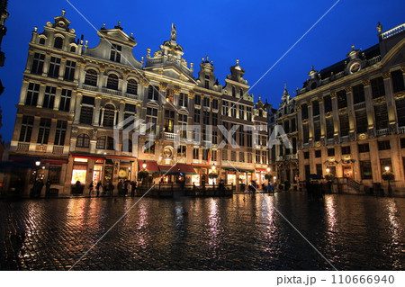 雨上がりのグランプラスの夜景(ベルギー ブリュッセル)