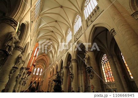荘厳なるサン・ミッシェル大聖堂の身廊(ベルギー ブリュッセル)