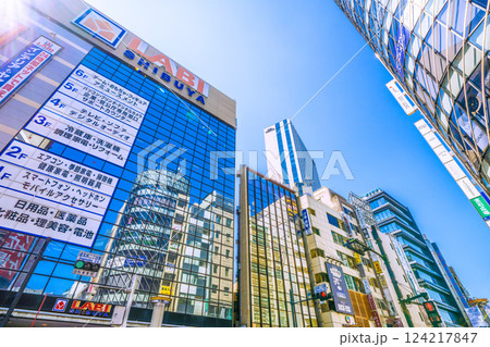 日本の東京都市景観 東京・渋谷の家電量販店などを望む