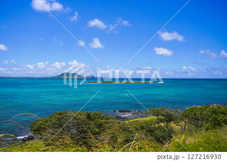 オアフ島ラニカイビーチの路地から望むモクルア島-2
