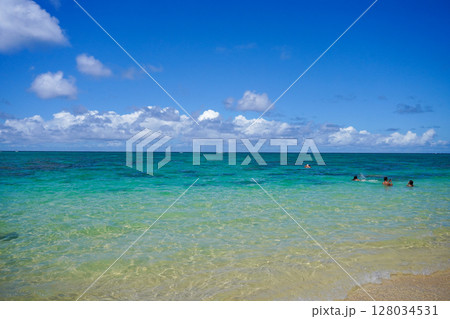 ハワイ ラニカイビーチ 白い砂浜と透明な海 青空 南国 風景