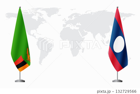 Zambia and Laos flags for official meeting