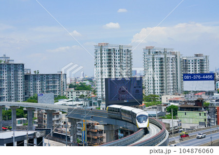 タイ・バンコクのMRTイエローラインの電車、ラートプラーオ駅から撮影