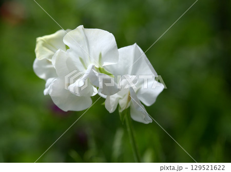 White sweet pea flowers in close up