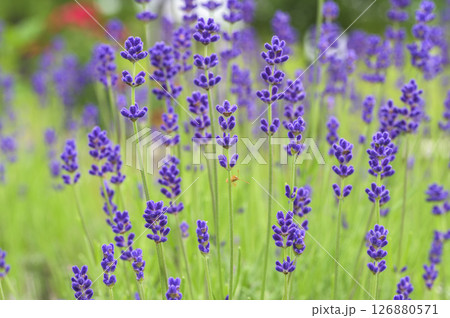 盛開美麗的紫色薰衣草搭配模糊背景。
